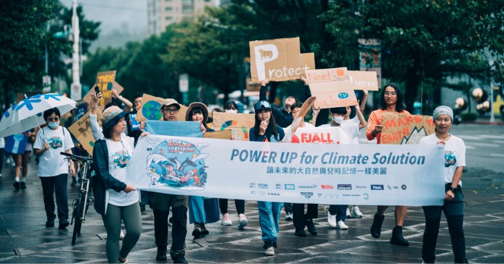 2024年-2026年在國際氣候高峰會COP前,POW Taiwan 號招戶外人一起在在台北前101 集合,我們扛著滑雪板、穿著衝浪褲、踩著單車,用戶外人的樣子,走進城市,為我們熱愛的大自然展開氣候行動。「回到未來大遊行」是一次高聲的呼喊,我們熱情的邀請戶外人用自己的方式,加入這場守護戶外的氣候行動。